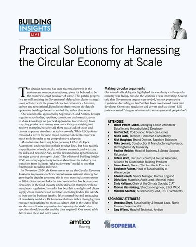 Bringing together leading voices from across the built environment, the round table took place on 12 November and tackled the realities behind reuse, recycling, data, incentives and regulation.
